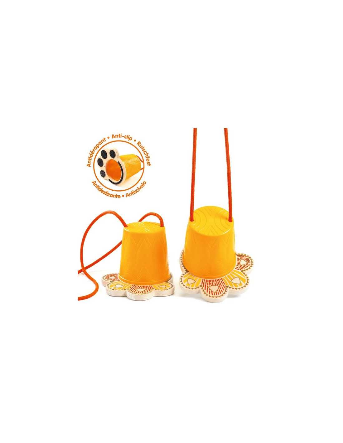 Un jeu de dextĂ©ritĂ© et d’Ă©quilibre avec une semelle antidĂ©rapante et avec une longueur des cordes qui est ajustable Ă la taille de l’enfant.